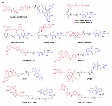 ▲各种 PROTAC 小分子及类似物(图片来源:《Biochemical Journal》) 临床前实验中的候选药物