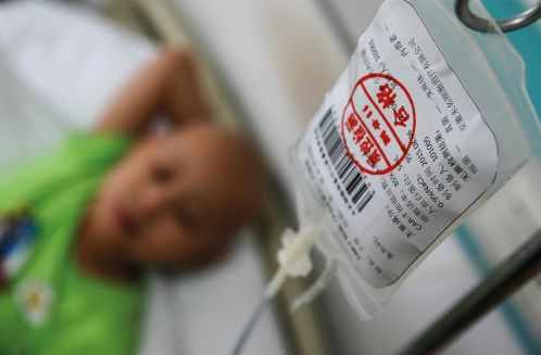 图说:一名 6 岁的白血病患儿小磊(化名)接受 CAR- T 细胞免疫疗法。图 /CFP
