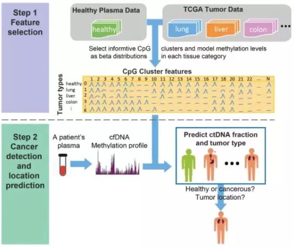 该方案的工作原理便是通过寻找患者血液循环中自由流动的癌症 DNA,并研究其特定的分子模式,接下来并将该模式与来自不同癌症类型的肿瘤表观遗传学数据库进行比较。就像上面所解释的一样,来自肿瘤细胞的 DNA 在癌症的最早阶段进入血流循环,因此为疾病的早期检测提供了独特靶标。