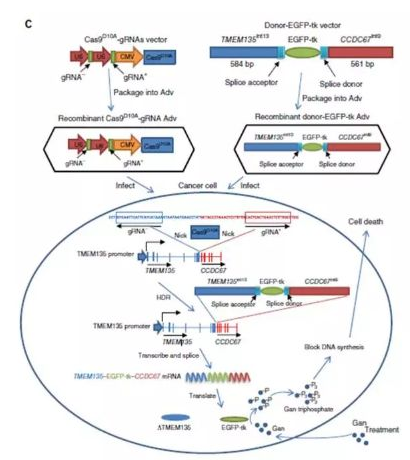 introduce EGFP-tk into the breakpoint of TMEM135–CCDC67