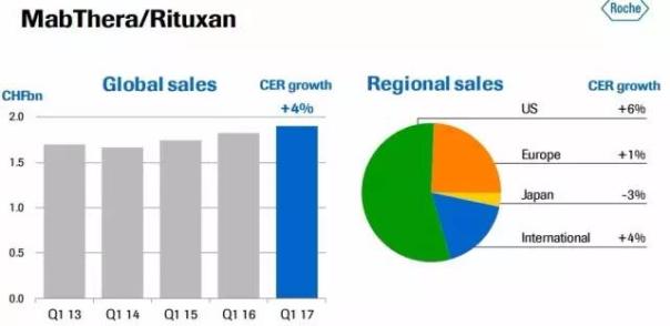 美罗华和赫赛汀分列世界最畅销的十大生物药之列。2017年第一季度的销售额分别为1.9亿和1.7亿瑞士法郎。