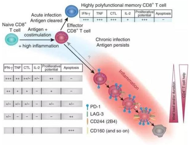 ▲T 细胞的衰竭(图片来源:《Nature Immunology》)
