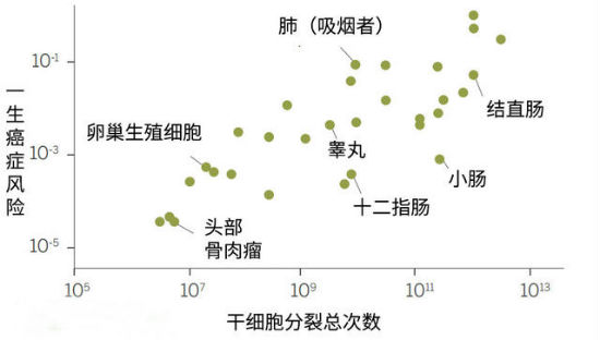 干细胞分裂次数和癌症发病率有很强的相关性。