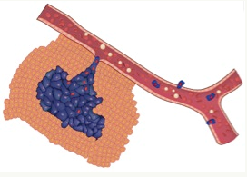 图一、原发灶肿瘤细胞侵袭血管,形成循环肿瘤细胞