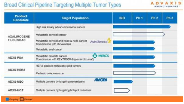 ▲合作推动了 Advaxis 公司的多个临床项目(图片来源:Advaxis 公司官方网站)