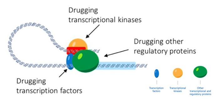 2013 年 4 月,超级增强子研究的开拓者 Young 与哈佛大学医学院研究员 James Bradner 合作成立了锡罗斯生物制药公司(SyrosPharmaceuticals Inc.)。Syros 充分利用自主知识产权的基因研究平台,筛查病变组织中异常激活的 DNA 非编码片段。Simonian 希望公司能够找到新型致病基因,并开发一类能够特异性靶向 DNA 非编码调节性区段,研发能够直接靶向特定靶点的小分子药物。Syros 专注开发那些能够靶向于 转录因子 , 转录性激酶 和其他 转录调节活性蛋白 的新型基因调控药物。(见图 6)