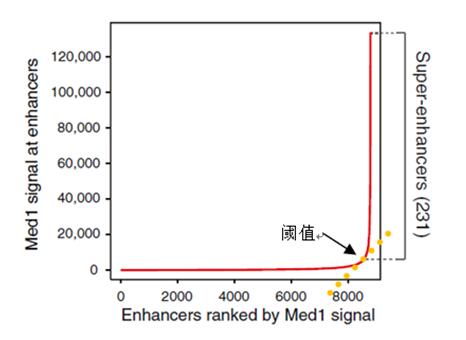图 2. 确定超级增强子和普通增强子之间的阈值 [1]