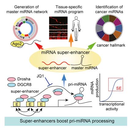 图 5. 超级增强子驱动 miRNA 前期的生成机制 [9]
