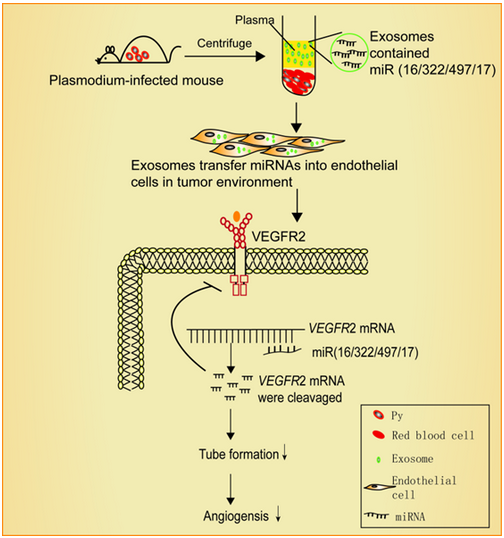 外泌体是细胞外膜泡,在细胞与细胞间通讯中起作用。在病原体感染宿主时,外泌体也发挥重要作用。但是,在上述论文发表之前,科学家们并不清楚疟原虫感染宿主所产生的外泌体是否能够抑制肿瘤血管生成,更不知道其中的分子机制。