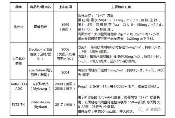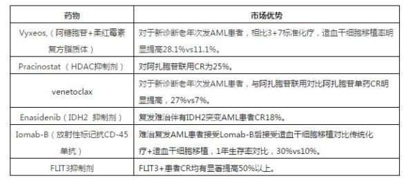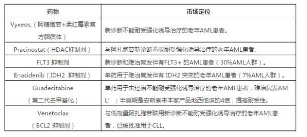 除M3型外AML现有主要治疗药物只有4种,