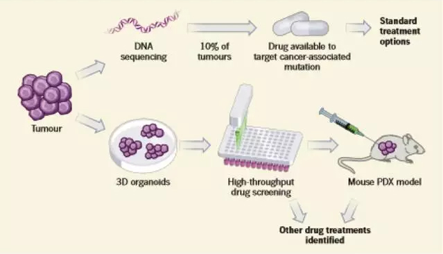 用个性化的方法创建体外和体内肿瘤模型过程,可以用于帮助确定癌症治疗药物的选择,增加我们对肿瘤治疗反应的理解。