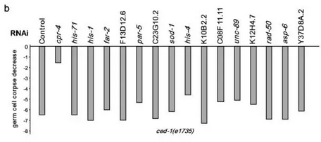 科学家们决定来个穷举法。他们利用质谱的方法,寻找培养基中与对照组不同的蛋白。随后,针对找到的 19 种蛋白,他们又挨个设计了 RNA 干扰的手段对这些蛋白进行抑制。在这 19 种蛋白里,只有一种叫做 CPR- 4 的蛋白与 RIBE 效应相关。当它被抑制后,线虫的 RIBE 效应神奇般地消失了。