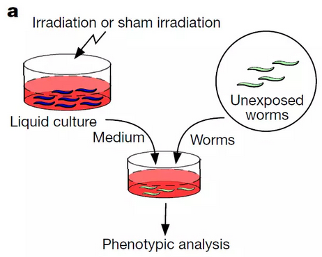 通过精妙设计,研究人员确认了线虫内也有 RIBE 效应(图片来源:《自然》)