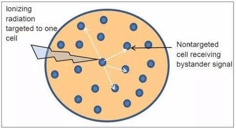 未受辐射的细胞也会受到放疗的影响,这种现象叫做“辐射诱发的旁观者效应”(图片来源:《Journal of Cancer Research and Therapeutics》)