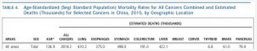 2015 年中国癌症死亡率及癌症估计死亡人数 (图片来自参考资料 11)