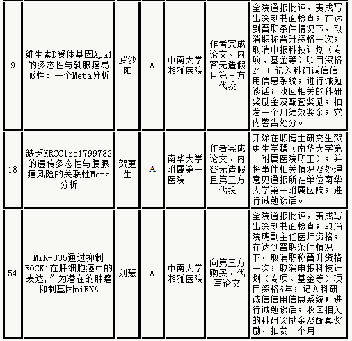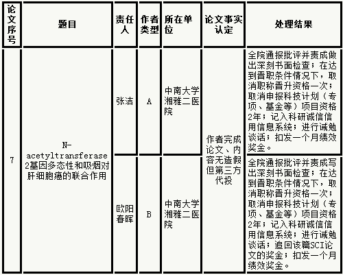根据《教育部科技类学风建设办公室关于妥善落实集中撤稿事件涉事作者处理意见的通知》(教技司 [2017]295 号)要求,现将我校《肿瘤生物学》集中撤稿论文责任作者的调查处理结果进行公布。