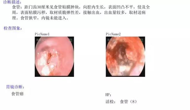 给予消化道内窥镜检查+活组织取材病理学检查,胃镜检查结果如下:胃镜下活组织取材病理检查考虑鳞癌。①给予检查肺部CT检查,图像如下:图像所示,食管中下段管壁增厚,其上段食管管腔增宽并管腔内积液。