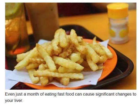 美国一档专业医学电视节目《医生》中播出的报道:吃油炸食品一个月,就可以引起肝脏明显变化,引发人体内酶的变化类似肝炎。