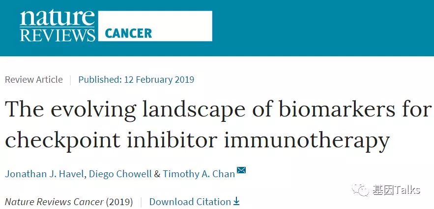 2019年初,Nature Reviews Cancer 发表了一篇综述,描述了预测免疫检查点抑制剂(ICIs )疗效的生物标志物最新进展,讨论了肿瘤与宿主基因组、肿瘤微环境和免疫功能相互作用产生的机制基础。
