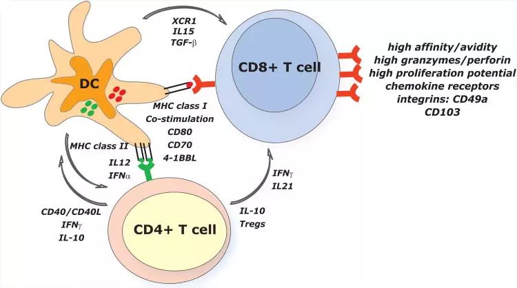 DC还分泌趋化因子,专一性趋化初始型T细胞,促进T细胞富集,增强对T细胞激活。