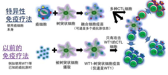 这是一种很理想的疗法,我们都知道癌症形成的原因之一,就是癌细胞隐藏的很好,树突细胞无法识别癌细胞,大家想象一下,把自己的癌细胞和树突细胞融合,形成携带多种癌细胞表面的特异性抗原的树突细胞,这些树突细胞就具备了识别肿瘤细胞的能力,我们把这些细胞回输导体内,他就会教导体细胞去识别不同的癌抗原的癌细胞,一组去找a抗原,一组去找b抗原癌细胞,把他们统统消灭,同时结合增强体内T细胞的辅助治疗白细胞介素12一起使用,能够有效增加杀手T细胞的数量,从而达到最佳的抗癌效果。目前在国际上被广泛研究。