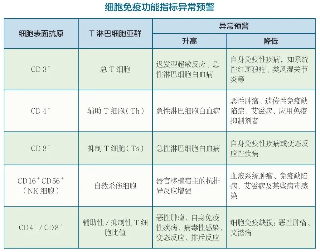 监测总 T 细胞以及各细胞亚群在 T 细胞总数中所占的比例,以此来评估细胞的免疫功能,这是发现免疫力低下、感染性疾病以及恶性肿瘤的重要手段。