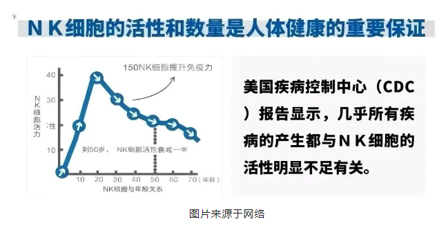 40 岁以后,NK 细胞的数量、活性及功能会急剧下降,各种疾病都会不请自来。及时补充体内 NK 细胞的数量,成为激活免疫、打败癌症的关键。