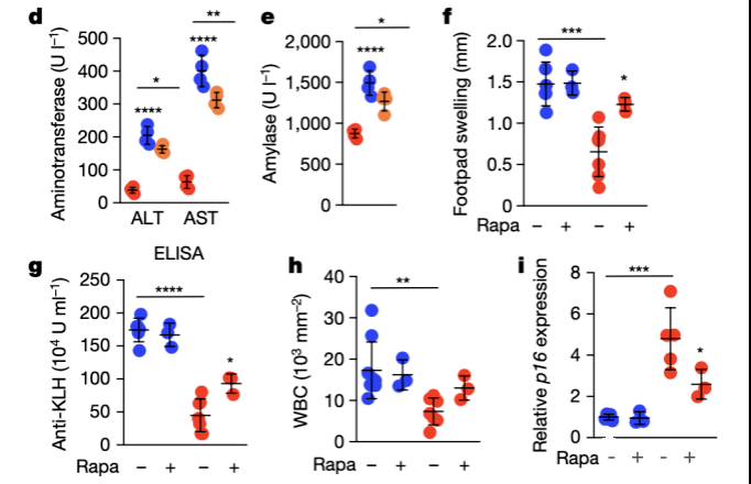 最后,研究者对小鼠进行了雷帕霉素治疗。治疗结果显示,雷帕霉素能够降低免疫细胞中的衰老标记物,同时提升免疫功能。这意味着小鼠的免疫功能得到了改善,充分证明了免疫衰老是可以通过特定方式进行调节的,为延缓衰老提供了一个极为有效的策略。