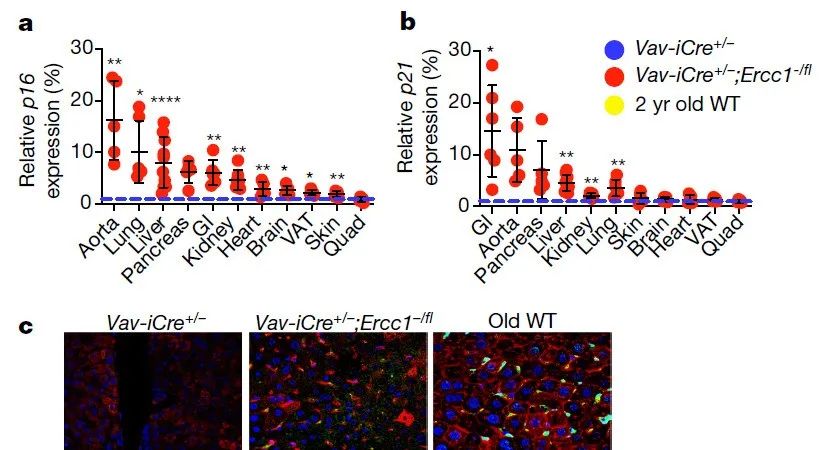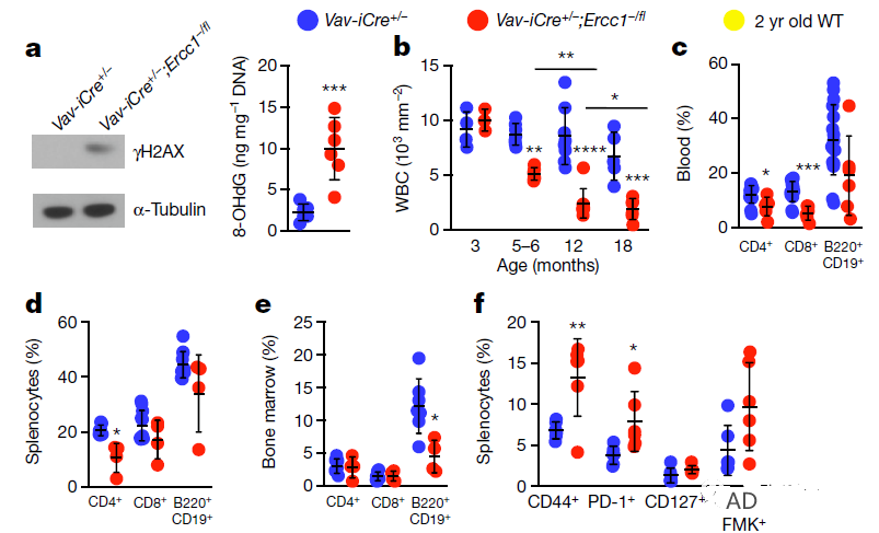 - 敲除小鼠造血细胞中的 Ercc1 基因,构建免疫细胞衰老小鼠模型。