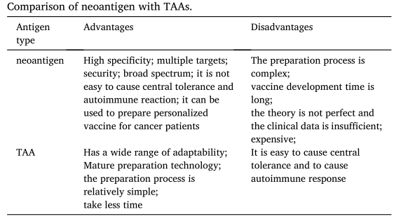 图1. 肿瘤新抗原与肿瘤相关抗原(TAA)的比较