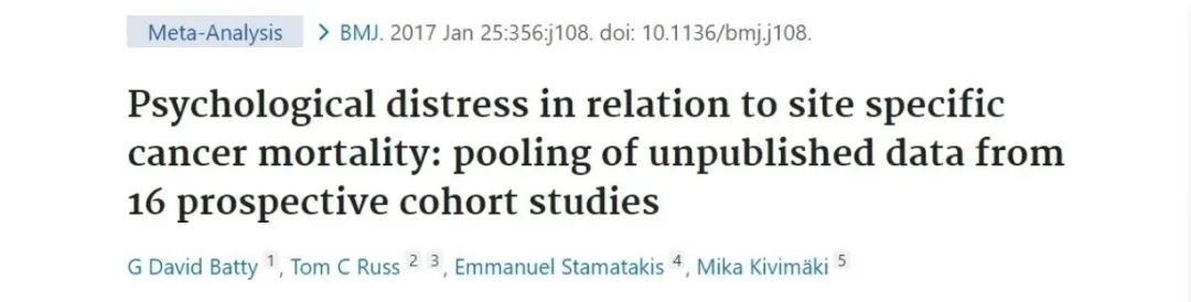 相关研究成果发表在国际顶级期刊《BMJ》上,原题为《Psychological distress in relation to site specifc cancer mortality: pooling of unpublished data from 16 prospective cohort studies》。