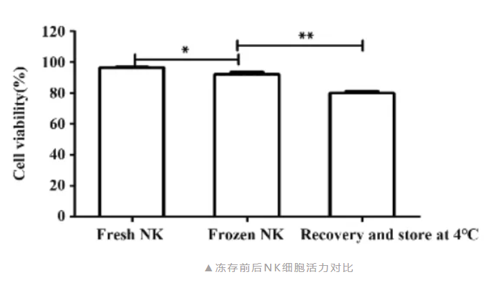 新鲜 NK 细胞与冻存 NK 细胞存活率对比