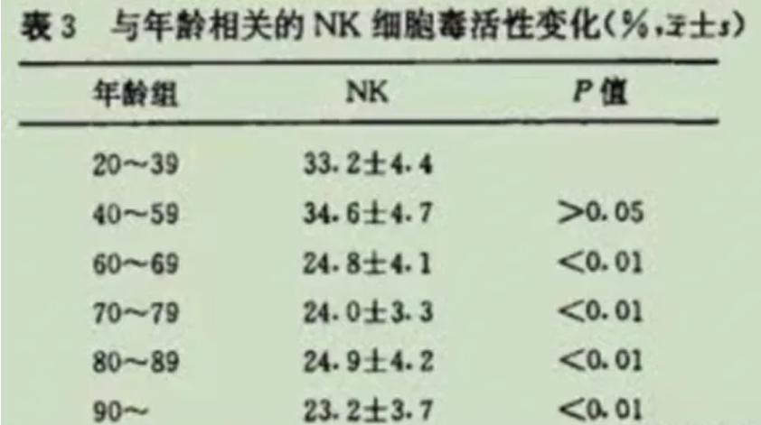 然而,NK 细胞的活跃期并非永恒。随着年龄的增长,NK 细胞的数量和功能会出现下降,这一现象被称为免疫衰老。具体表现为: