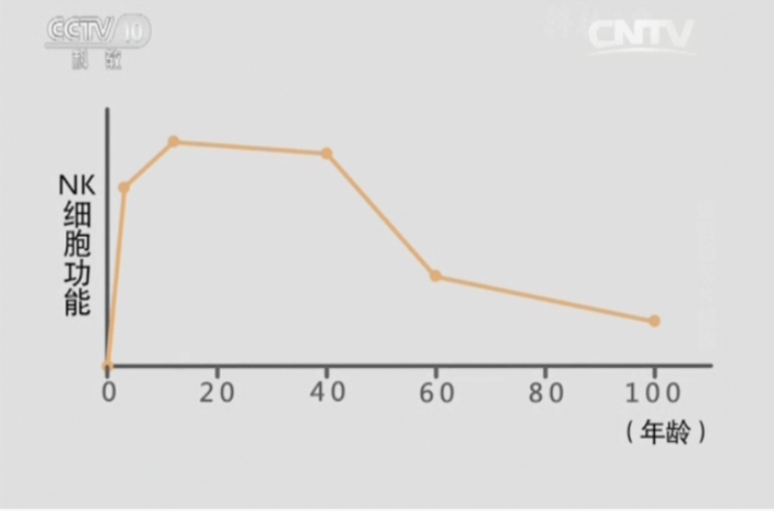 苏州大学附属第一医院史进方等 2005 年在《现代免疫学》发表论文《免疫衰老及其免疫学预警指标》中论述 NK 细胞:“研究表明,年龄超过 100 岁的老年人也能有效抵抗感染,因为其 NK 细胞系统功能完好,可以移行并有效杀灭靶细胞,而免疫细胞受损的老年人易于感染流感、结核等疾病。因此,NK 细胞的活性降低是疾病的前兆,保持免疫细胞的活性有助于延长寿命。”