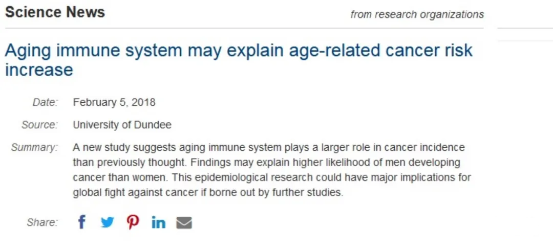 结果显示,衰退的免疫系统在癌症的发生与发展过程中所发挥的作用远超预期。这意味着,预防癌症的核心要点或许在于免疫细胞,而非基因突变。
